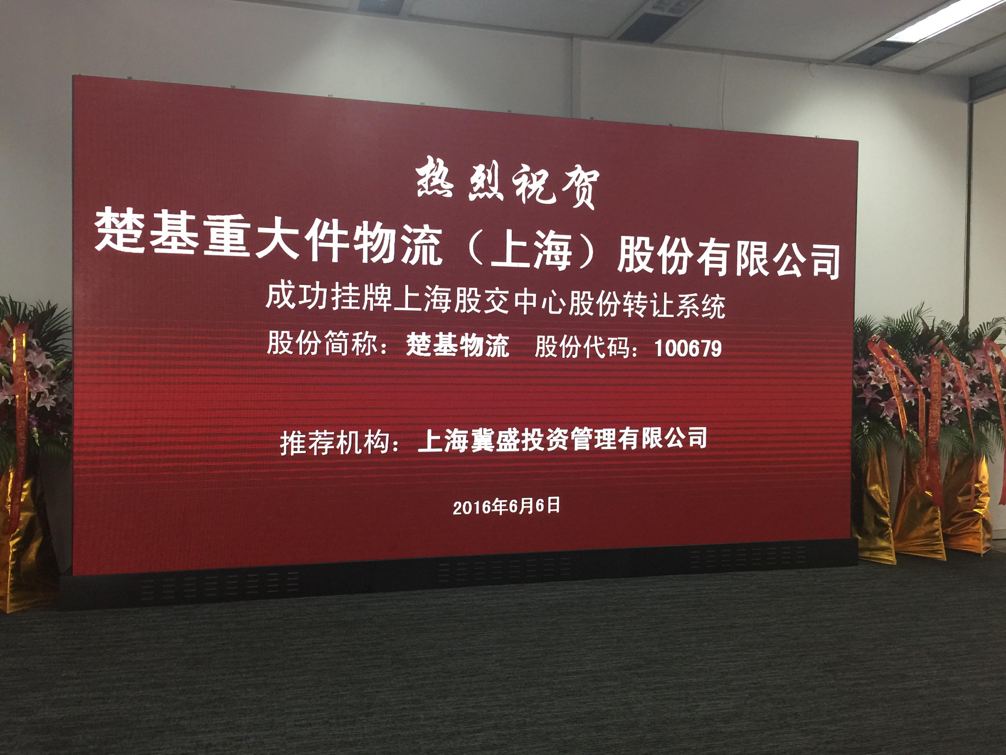 2016年6月6日,楚基李其岡順勢而為。楚基重大件物流成功在上海E板掛牌上市,楚基物流正式掛牌于上海股權(quán)托管交易中心(簡稱股交中心),自此開啟了嶄新篇章。